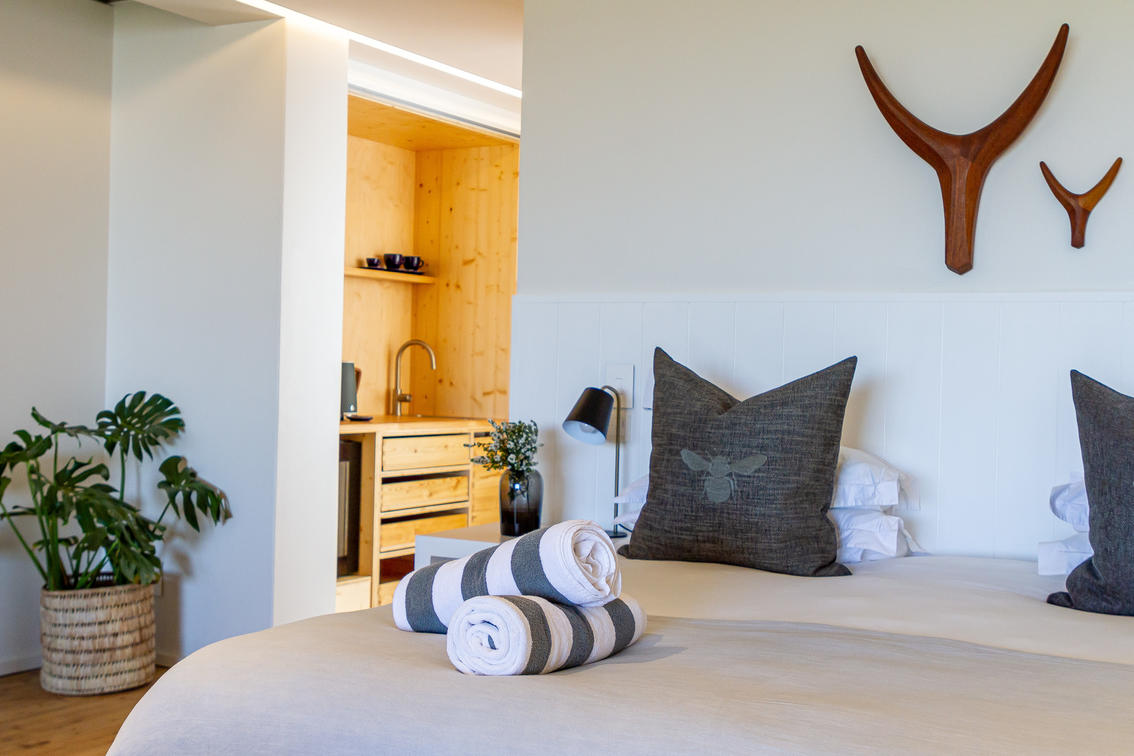 Die geräumigen Nature King Suiten befinden sich am Ufer eines Flussbetts mit Blick auf die einzigartige Natur und Landschaft der Westküste. Jede Suite verfügt über einen Wohnbereich mit Kamin, der auf eine private Terrasse mit unvergesslichem Blick auf die Natur führt, einen Loft-Arbeitsbereich für Geschäftsreisende und ein Schlafzimmer mit eigenem Bad. Die durchschnittliche Suite Größe beträgt 80m ².