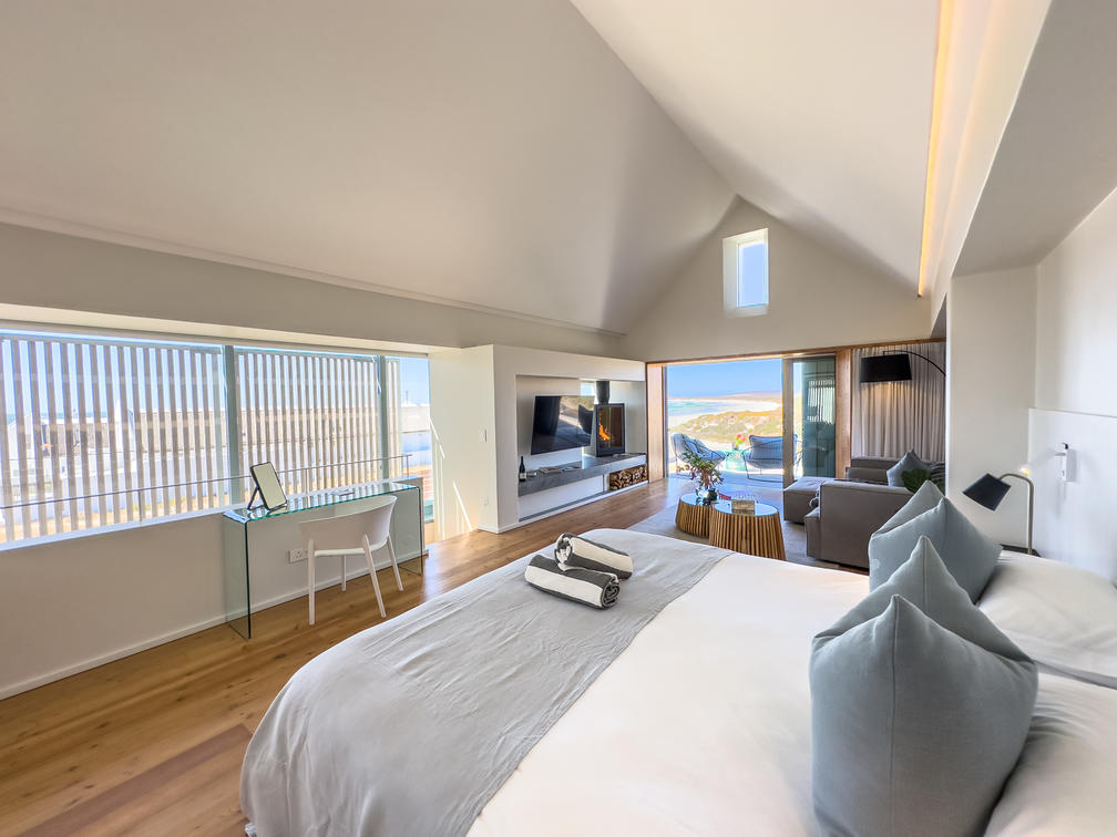 Unsere neuesten Ocean King Suiten bieten einen faszinierenden Blick auf den Atlantik, umgeben von Paternosters berühmtem sonnenverwöhntem Strand. Diese luxuriösen Suiten verfügen über ein Schlafzimmer mit einem großzügigen eigenen Bad. Atemberaubende Ausblicke werden mit einem romantischen Ambiente gepaart mit Badezimmern mit Doppelduschen, einer freistehenden Badewanne für 2 Personen und Außenduschen für achtsame Selbstpflege unter Sonne und Himmel. Entspannen Sie sich in ultimativer Gelassenheit auf Ihrer privaten Terrasse und genießen Sie die Lieder des Ozeans, nur wenige Meter entfernt.