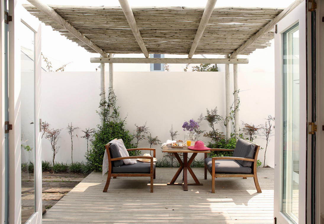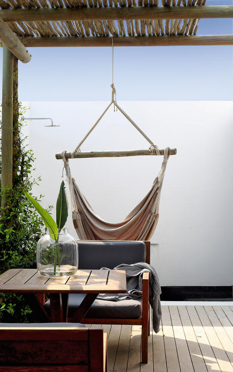 Die Kombination von Innen und Außen Wohnen in geschützter Privatsphäre. Verfügt über ein Schlafzimmer mit eigenem Bad (30 m2) und einen privaten Innenhof mit entspannender Lounge, schönen Wasser-Features und Außendusche.