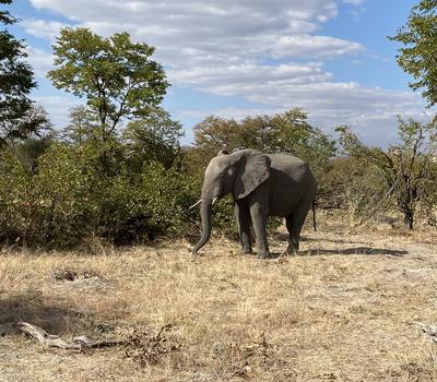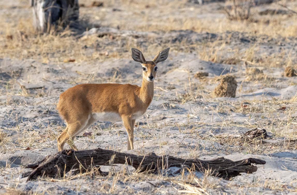 Sie fahren in Richtung South Gate und passieren dichte Vegetation zwischen NG34 und NG35 — ein Abschnitt, der hervorragende Möglichkeiten bietet, Wildtiere zu beobachten, die sich zwischen Futter- und Ruhegebieten bewegen. Am South Gate werden die Parkeintrittsformalitäten erledigt, bevor es auf der historischen „Old Cutline Road“ durch ausgedehnte Mopanwälder nach Khwai weitergeht. Obwohl es sich in dieser Region nicht um ein Gebiet mit hoher Wilddichte handelt, werden in dieser Region häufig Elefanten, Büffel und seltenere Arten wie Eland, Zobel und gelegentlich auch Vogelantilopen gesichtet.