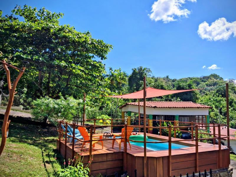 We're located on a little hill offering you unforgettable views and sunsets. We share our garden and surroundings with wildlife like howler monkeys, pizotes, coyotes, deers and birds like the motmot and various trogons.