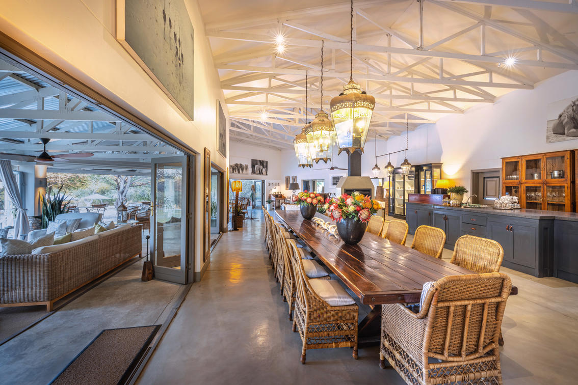 Mushara Outpost steht für klassische Gastfreundschaft mit warmem, freundlichem und persönlichem Service an der Schwelle zu den Wundern des Etoscha-Nationalparks. Das Haupthaus und Restaurant der Lodge ist im Stil eines alten Farmhauses mit hohen Mauern, einem Wellblechdach und einer großen, umlaufenden Veranda nach Nordosten ausgerichtet, um den Schatten zu nutzen.