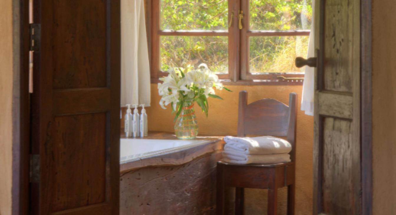 Dieses Hillside Cottage ist am weitesten von den Hauptbereichen entfernt und verfügt über eine eigene Veranda und ein Tauchbecken. Es verfügt über ein gemeinsames Wohnzimmer mit zwei Schlafzimmern mit eigenem Bad, von denen eines ein kleines Zweibettzimmer ist. Dieses helle und luftige Haus ist ideal für diejenigen, die etwas abgelegener sein möchten.