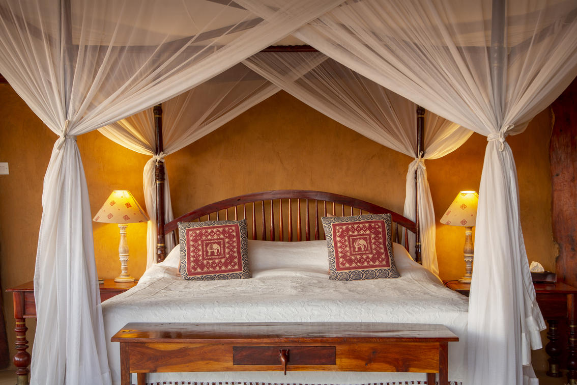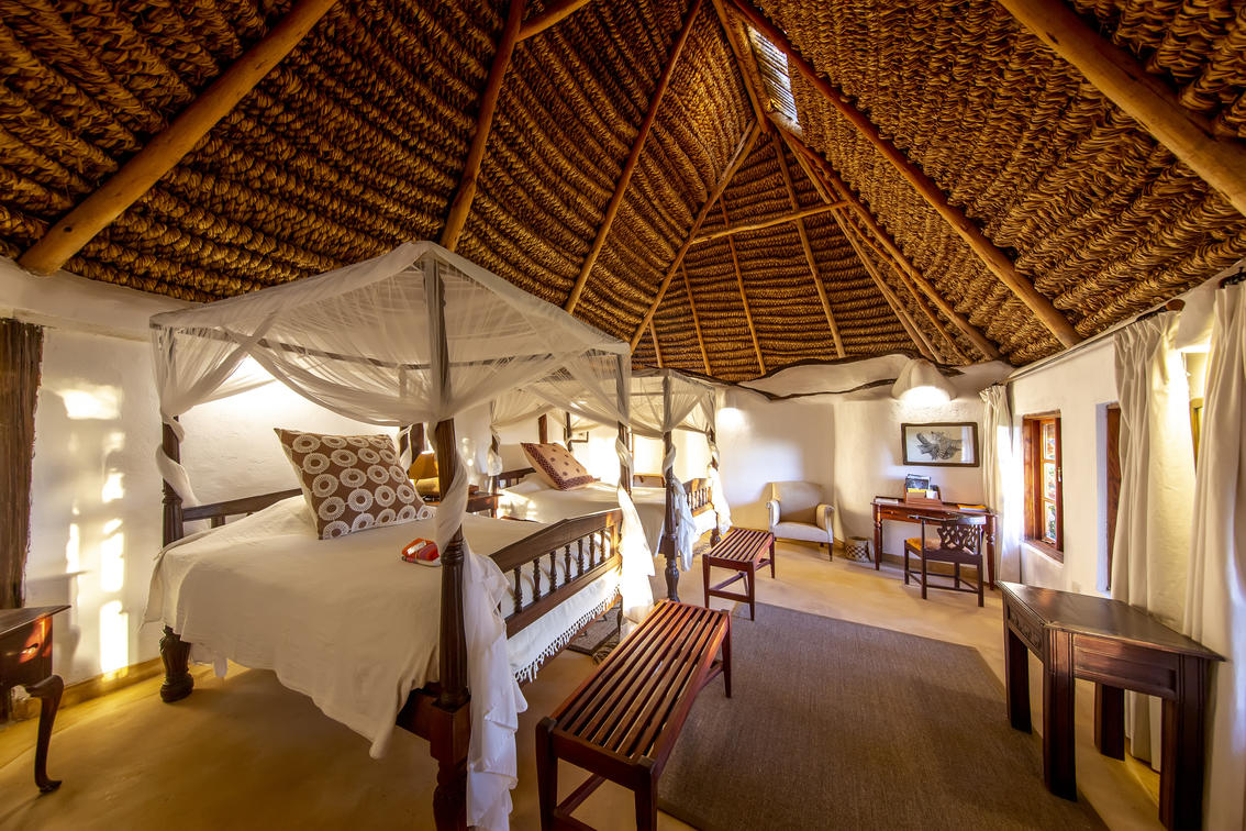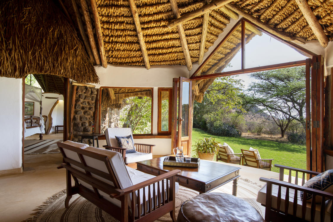 Die Garden Cottages in Lewa Wilderness liegen den Hauptbereichen am nächsten und sind paarweise gebaut und verfügen über ein eigenes Bad sowie eine gemeinsame Veranda und ein Wohnzimmer. Die Aufteilung dieser Zimmer ist ideal für Familien oder diejenigen, die nicht zu weit laufen möchten, da sie sich in der Nähe der wichtigsten Einrichtungen befinden. Die Zimmer sind von gepflegten Rasenflächen flankiert und umgeben, die Familien zusätzlichen Platz im Freien bieten. Diese Gartenzimmer wurden für Familien oder Freunde gebaut, die zusammen reisen, und sind sehr nah am Herzen dessen, was hier passiert.