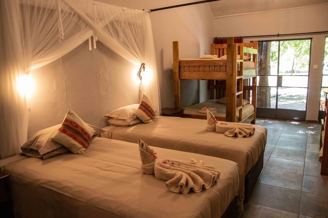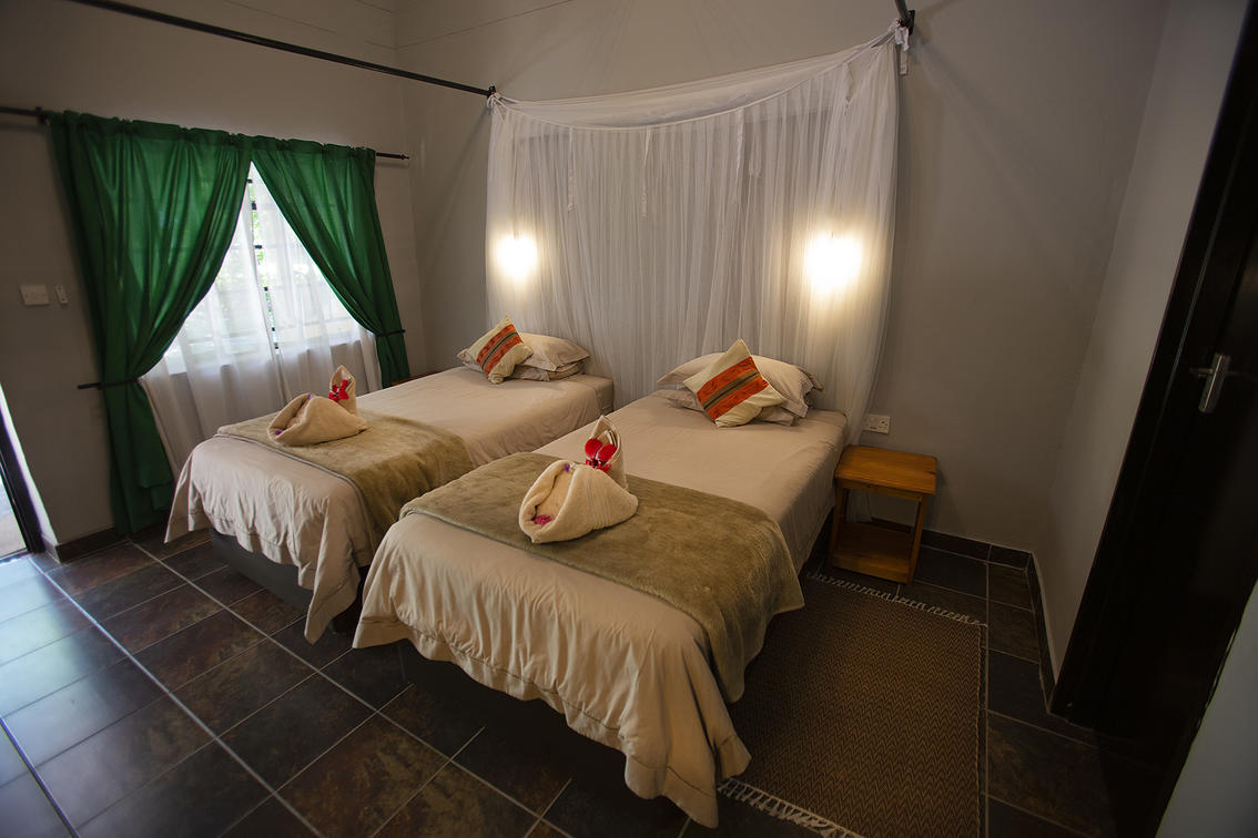 Die Unterkunft ist komfortabel und liegt in den Gärten der Lodge. Die Lodge verfügt über 12 Heritage Chalets, alle mit Dusche, DSTV und Klimaanlage. Die Island Safari Lodge bietet komfortable Unterkünfte inmitten eines üppigen Gartens. Gut verteilt, hat jedes Zimmer einen schönen Blick über den von Bäumen gesäumten Garten in Richtung Fluss.