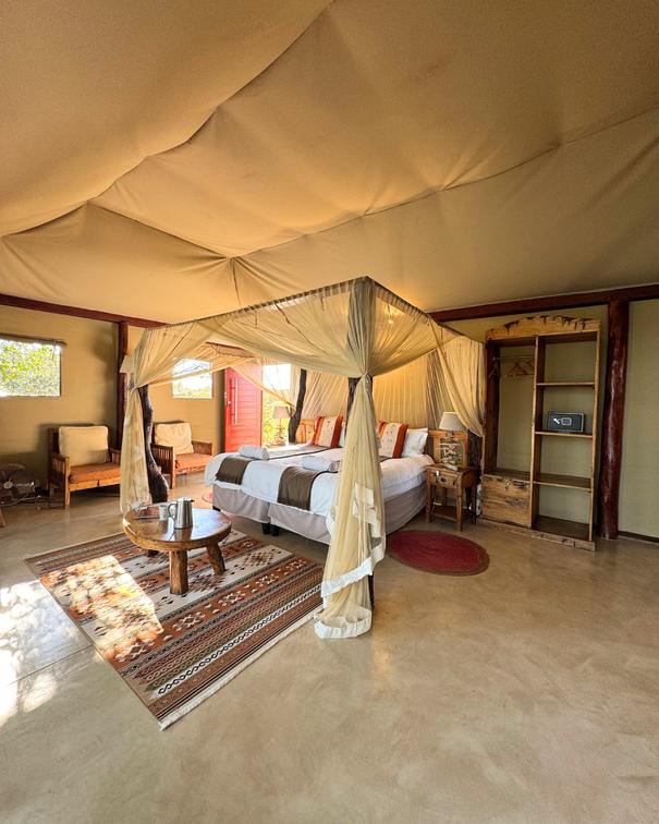 Alle Zimmer sind als Kingsize-Betten eingerichtet, können aber auf Anfrage auch als Zwillinge eingerichtet werden. Diese Unterkünfte sind für Gäste mit einem Safari-Paket reserviert, können aber auf Last-Minute-Basis gebucht werden.