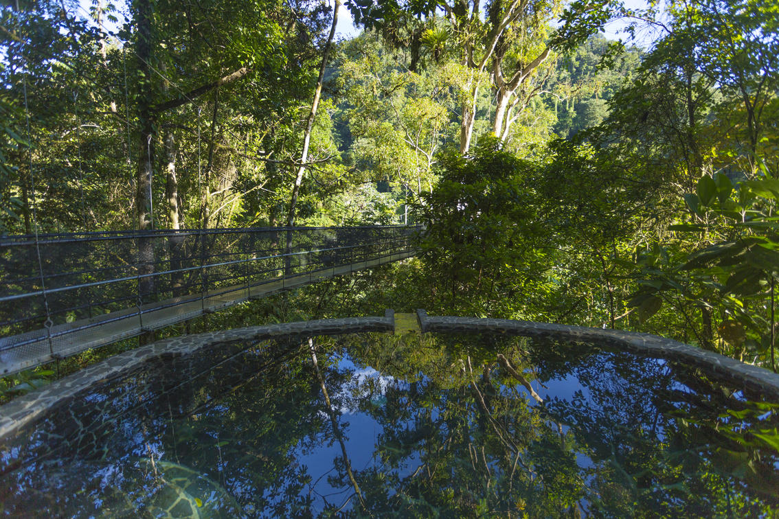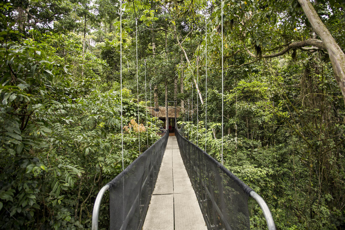 Eine private Hängebrücke führt vom Deck zu einer Plattform hoch in einem riesigen Regenwaldbaum, von der aus man einen herrlichen Blick auf den Fluss Pacuare und den umliegenden Dschungel hat. An jedem Morgen oder Abend können Sie Dutzende von Vogelarten in den nahegelegenen Baumwipfeln von Ihrer Vogelwarte aus beobachten.