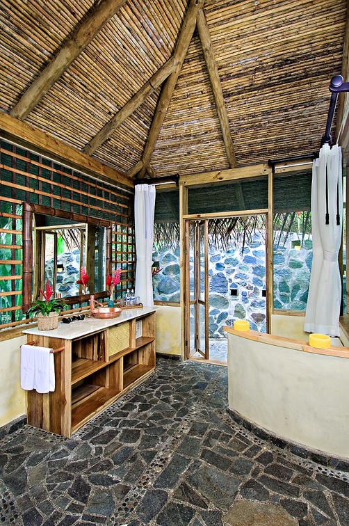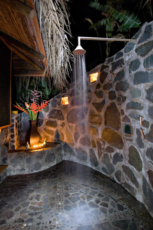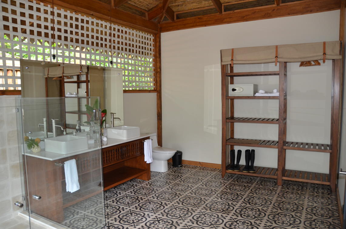 Ihr eigenes Badezimmer bietet einen fast 360°-Blick auf den Dschungel. In der Nähe befindet sich eine private, beheizte Außendusche, mit der Sie die leisen Geräusche und belebenden Düfte des Regenwaldes genießen können.