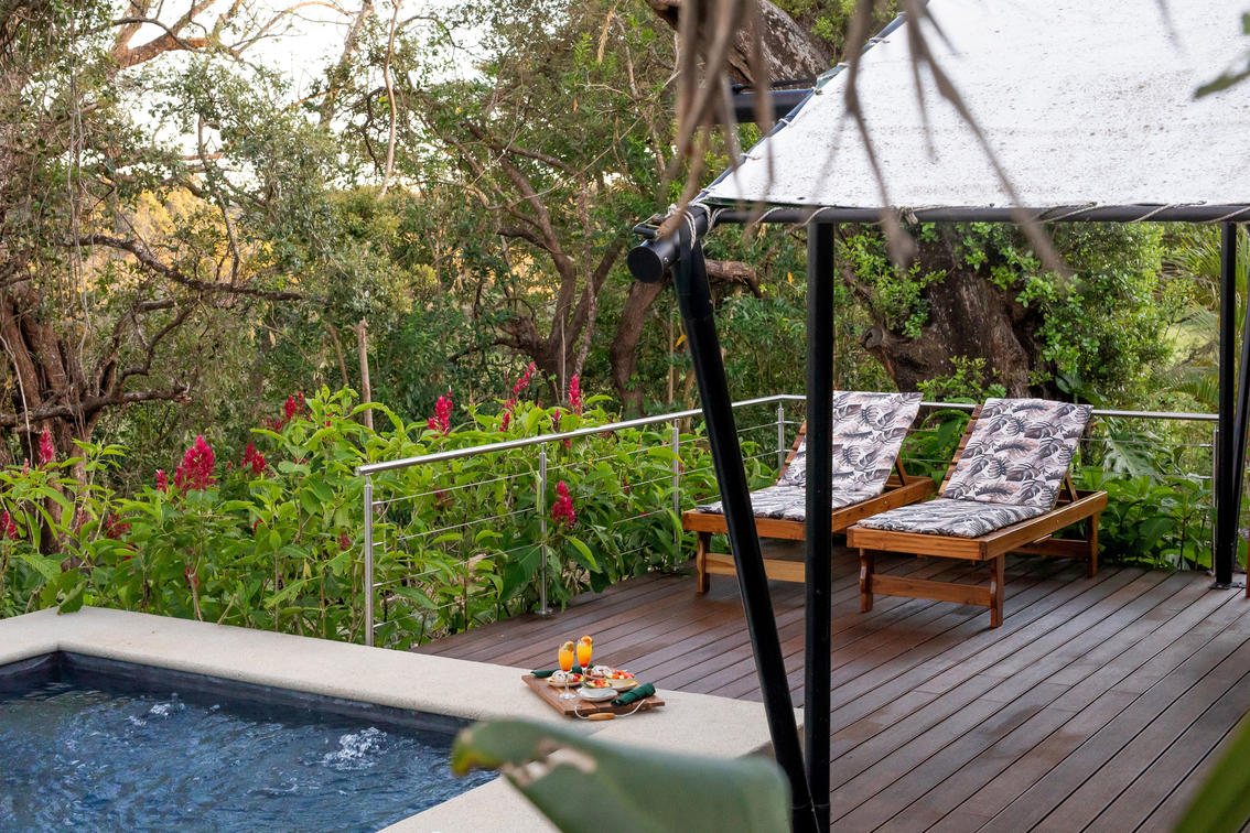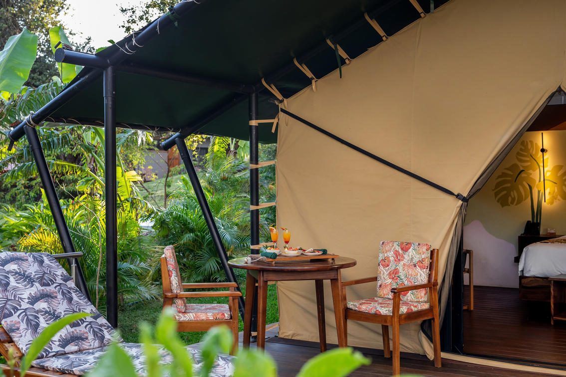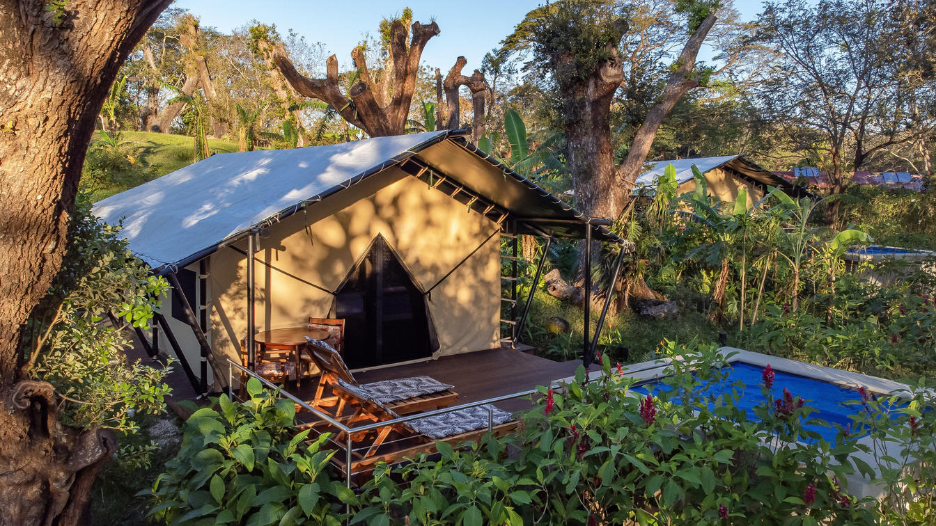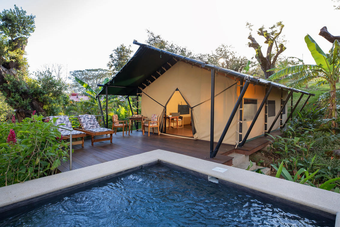 Gönnen Sie sich den ultimativen Kurzurlaub mit dem Tented Camp Experience in der Hacienda Guachipelín, wo Abenteuer auf unvergleichlichen Luxus im Herzen des atemberaubenden Nationalparks Rincón de la Vieja in Costa Rica treffen. Dieser exklusive Rückzugsort bietet die perfekte Balance zwischen Natur und Komfort und ermöglicht es Ihnen, sich wieder mit der Wildnis zu verbinden und gleichzeitig feinsten Öko-Luxus zu genießen. Stellen Sie sich vor, Sie liegen auf Ihrer privaten Terrasse mit Tauchbecken und trinken Ihren Morgenkaffee, während die Geräusche des Dschungels um Sie herum erwachen. Jedes Detail, von der eleganten Innenausstattung bis hin zu den Bio-Badeprodukten, wurde sorgfältig ausgewählt, um Ihr Erlebnis zu verbessern. Beginnen Sie Ihren Tag mit einem À-la-carte-Frühstück, das direkt auf Ihrer Terrasse serviert wird, und genießen Sie moderne Annehmlichkeiten wie Klimaanlage, Highspeed-WLAN und hochwertige Bettwäsche. Egal, ob Sie sich nach Romantik, Abenteuer oder purer Entspannung sehnen, die Tented Camp Experience ist Ihr Tor zu einem einmaligen Urlaub, der Sie nach mehr sehnen wird.