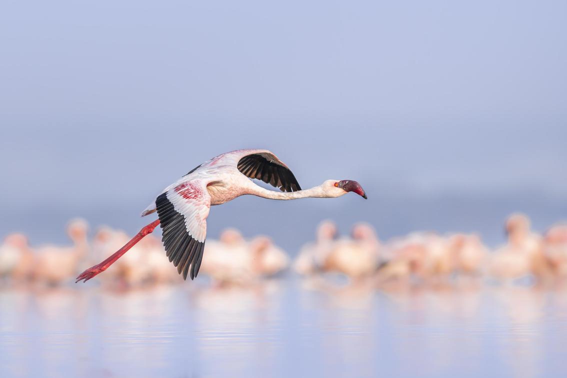 Nach einem frühen Morgen der Vogelbeobachtung fahren Sie weiter durch den Wald auf einer Straße, die über den Kamm von Emurru führt und in Richtung Soysambu Conservancy im Norden hinuntergeht, wo im Naturschutzgebiet selbst über 450 Vögel registriert wurden. Soysambu umfasst den Elmenteita-See, einen der Soda-Seen des Rift und Heimat einer stabilen und größeren saisonalen Bevölkerung von größeren und kleineren Flamingos, Great White und Pink-unterstützten Pelikan. Avocets, Sandpipers, Snipes und Spoonbills sind einige der anderen Arten, die das Wasser und die Küsten besetzen. Draußen im offenen Grasland finden sich Ground Hornbills, Secretary Birds und verschiedene Arten von Bustards.