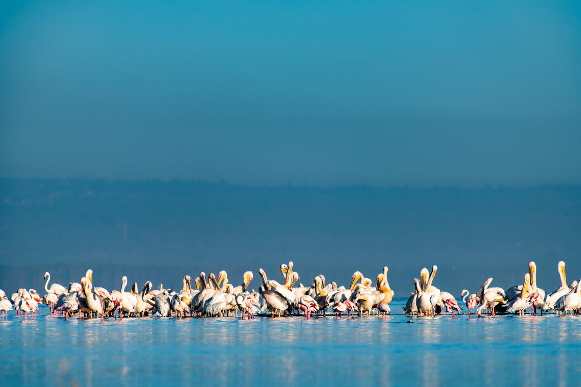 Zwischen Lake Naivasha und Lake Nakuru liegt ein weiterer alkalischer See Kenias — der Lake Elementeita. Das Gebiet ist ein unglaublich wichtiger Nährboden für Groß- und Kleinflamingos und ein wichtiger Brutplatz für Weiße Pelikane. Hier können Sie einen gemütlichen Spaziergang entlang der Küste machen und den Anblick wunderschöner Flamingos in ihren Tausenden sowie anderer Tiere wie Zebra, Gazelle, Eland und Warzenschwein genießen. Wir empfehlen generell, hier einen Zwischenstopp einzulegen, entweder auf dem Weg zum Lake Nakuru National Park oder auf der Rückfahrt vom Lake Nakuru National Park, da er auf dem Weg dorthin liegt.