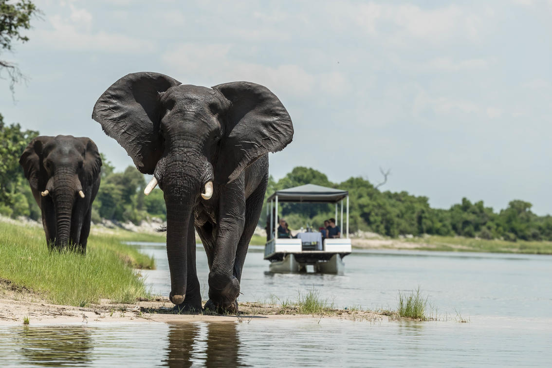 Nach dem Frühstück fährt die Fahrt von Muchenje ab und fährt zum Anlegesteg auf der östlichen Seite des Parks. Unser kleines Privatboot fährt um ca. 11.30 Uhr ab und verbringt 2,5 Stunden den Fluss zu erkunden. Die Führer wissen, wo die Elefanten sich lieber versammeln, trinken und zur Insel Sedudu überqueren, also machen sie ihren Weg zu diesen Gebieten, aber auf dem Weg werden sie die Ufer, Bäume und Pools erkunden, um den Gästen die anderen wunderbaren Tierarten zu zeigen, die den Chobe River besuchen. Sobald das Boot eine geeignete Überquerung oder Trinkstelle gefunden hat, ruht das Boot und die Gäste genießen ein köstliches Picknick und erleben dabei die Elefanten, die sich am Ufer versammeln. Beobachten Sie diese herrlichen Tiere trinken, während das Boot sanft in den Strömungen treibt, ist etwas Ehrfurcht inspirierendes.