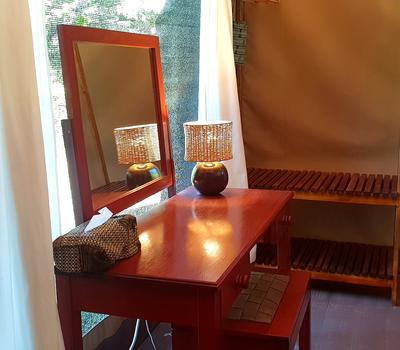 Die Schlafzimmerplattformen haben romantische und rustikale Himmelbetten (ein Queen- und ein King-Size-Bett, das in zwei Einzelbetten aufgeteilt werden kann), offene Vorderwände und ununterbrochene Aussicht auf Afrika. Jedes Schlafzimmer verfügt über eine Open-Air-Badplattform, eine kurze Treppe hinunter mit Warmwasserdusche, WC und Waschbecken. Ein großes Sofa, Sessel und Kissen sind auf dem mittleren Deck verteilt, um sich während der Hitze des Tages zu entspannen und das Spiel zu beobachten, das am Haus vorbei wandert, ohne Ihre Anwesenheit. Ein Esstisch ist ebenfalls vorhanden, wenn Sie lieber im Haus speisen möchten. Ein Kühlschrank, eine Bar sowie Kaffee- und Teezubehör stehen im Baumhaus zur Verfügung. Ein Handfunkgerät ist vorhanden, so dass die Gäste ein Fahrzeug anrufen können, um sie zum Pool, Restaurant oder Bar zu bringen, oder falls es ein Problem irgendwelcher Art gibt. Ihr Safari-Führer wird ansonsten mit ihnen planen, wann sie das Sammeln vom Haus und ihre bevorzugten Aktivitäten wünschen.