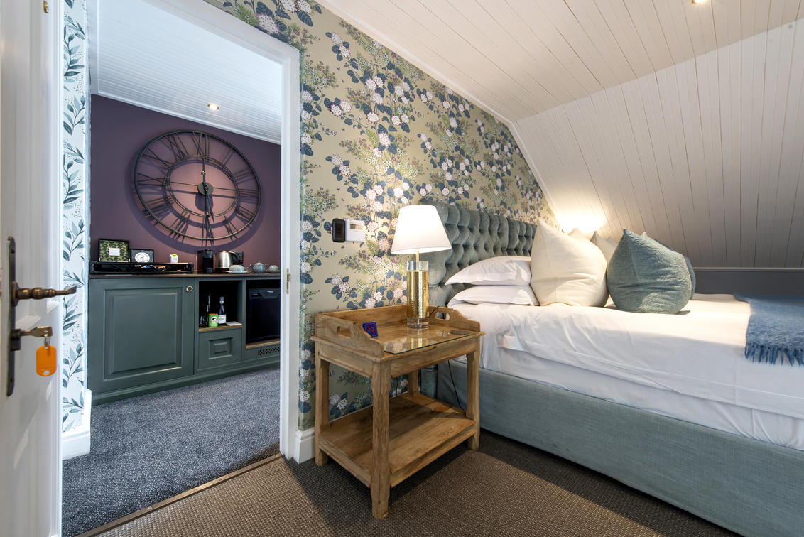 Zur Ausstattung gehören ein größeres Zimmer, ein Kingsize-Bett (extra lang) mit genähter Perkal-Satin-Bettwäsche, eine Klimaanlage (warm und kalt), ein großes eigenes Bad, eine viktorianische Badewanne und eine separate geräumige Dusche, ein LCD-TV, Nespresso-Kaffeemaschinen und Twinings Tea, ein Safe,