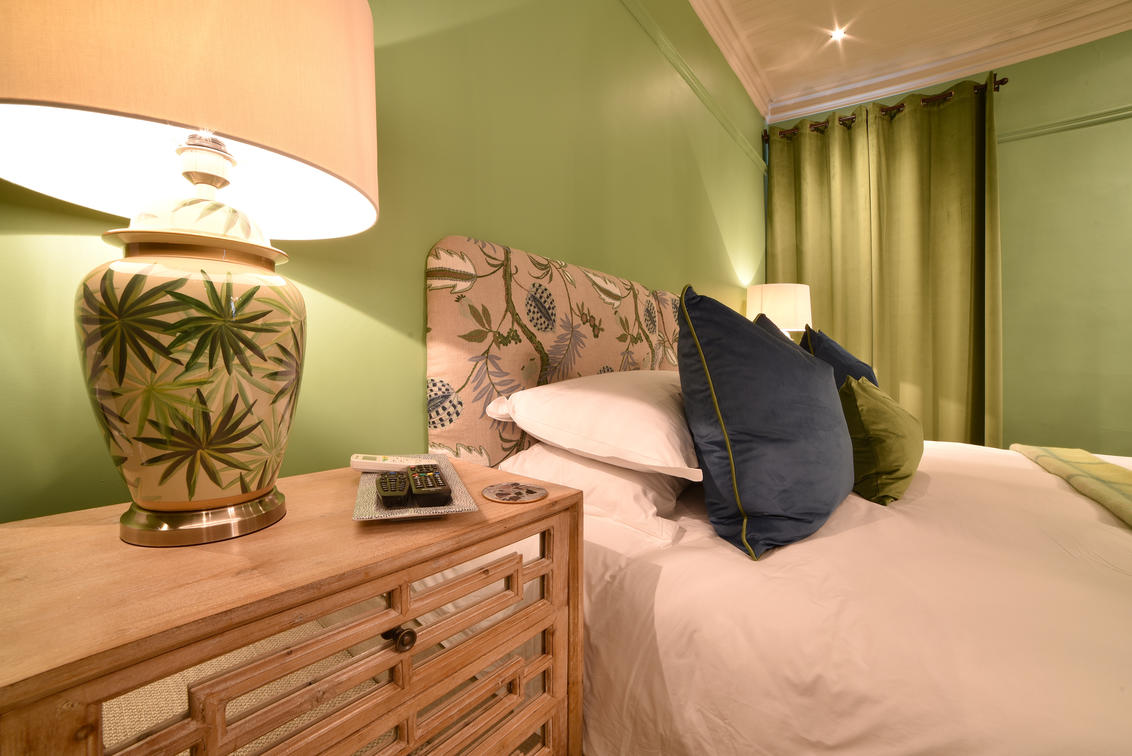Zur Ausstattung gehören ein Kingsize-Bett (extra lang) mit Perkal-Satin-Bettwäsche, eine Klimaanlage (warm und kalt), ein separates Badezimmer mit geräumiger Dusche, ein LCD-TV, Nespresso-Kaffeemaschinen und Twinings Tea, ein Safe, ein Haartrockner, Badelaken und Bademäntel sowie ein