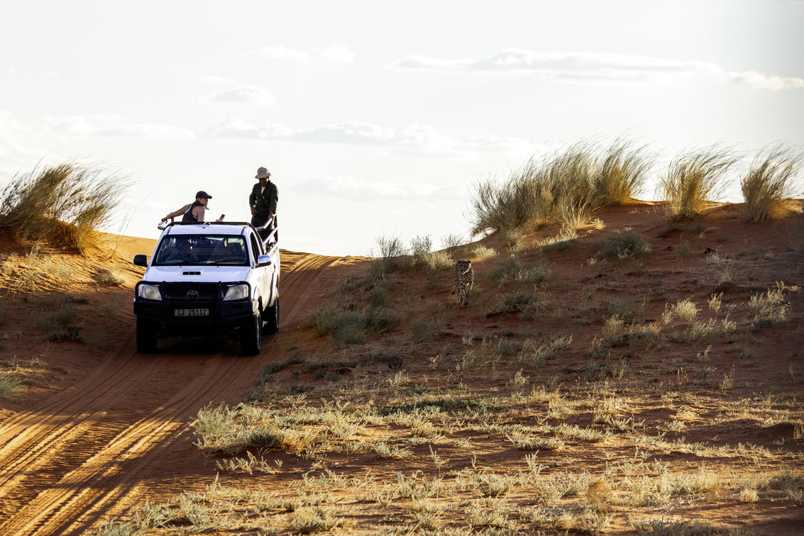 Erleben Sie unsere spezielle Gepardenfütterung am Abend. Die Geparde auf der Bagatelle Kalahari Game Ranch leben unter der Schirmherrschaft des Cheetah Conservation Fund. Aufgrund ihrer Vergangenheit kann leider keines dieser Tiere je wieder in die freie Wildbahn entlassen werden. Neigt sich der Tag dem Ende zu, ist es Zeit für den Sonnenuntergang. Den betrachtet man am besten von einer Düne aus, dabei ein erfrischendes Getränk in der Hand.
