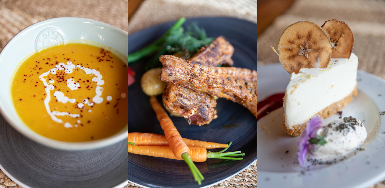 Die 3-Gänge-Menüs basieren auf verfügbaren frischen Produkten von ihren lokalen Lieferanten, um die frischesten aufregendsten Gerichte zu gewährleisten.