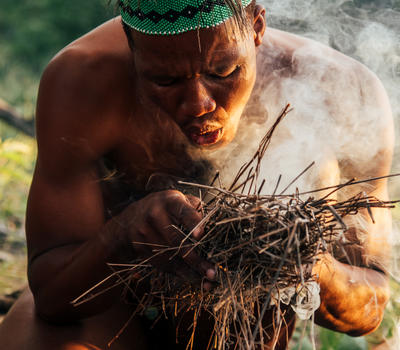 Kleine Familien von Buschman aus der Ju! Hoansi Clandorf Xai Xai an der Grenze von Botswana/Namibia der Kalahari Wüste kommen nach Meno a Kwena, um ihr Wissen über einen der letzten großen nomadischen Stämme zu teilen. Diese immens interessante Wander- und Kulturerfahrung gibt Ihnen einen Einblick in ihre Jäger/Gatherer-Lebensweise, da sie seit Tausenden von Jahren mit der Tierwelt koexistieren. Dieser sanfte Spaziergang ist sehr beliebt und appelliert an alle Altersgruppen.
