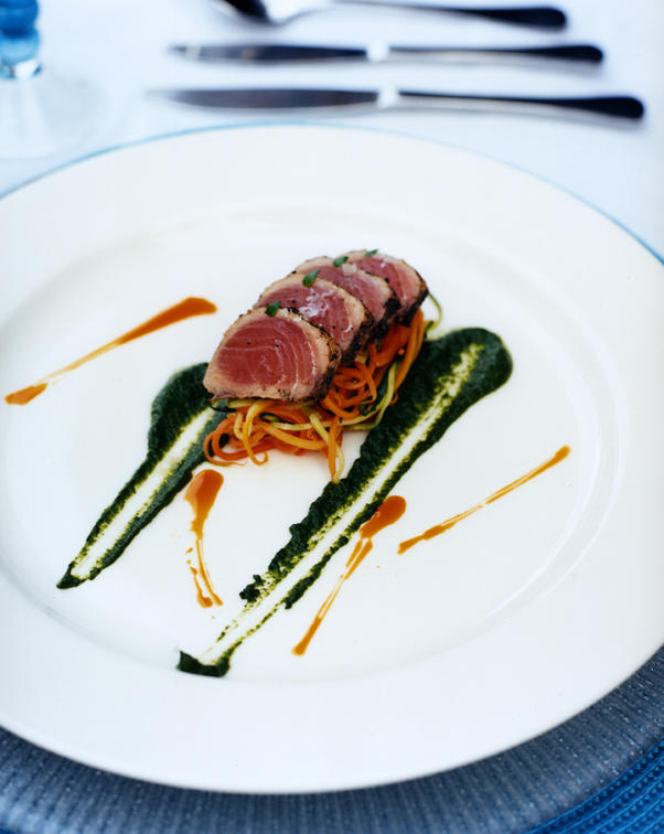 Unsere Menüs basieren auf dem, was frisch und verfügbar ist, mit einem Fokus auf leichte Mahlzeiten, einfache Zutaten und viel frischem Fisch und Meeresfrüchten. Es ist eine einfache, unauffällige Affäre. Wir bieten immer eine Auswahl an Gerichten, und unser Küchenchef wird gerne versuchen, alle persönlichen Wünsche, die Sie haben, zu erfüllen.