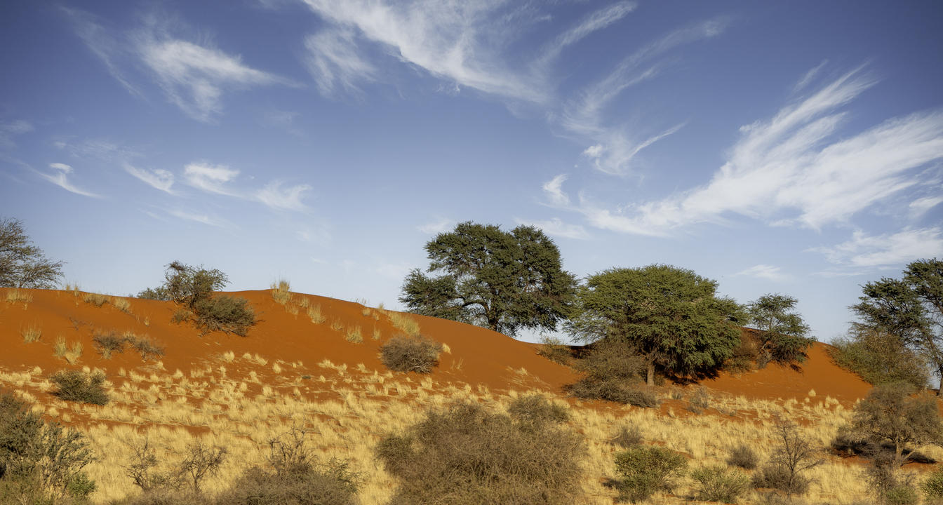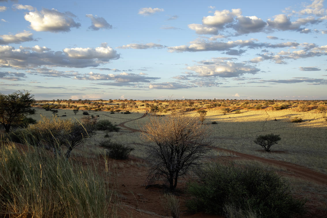 Im riesigen Schutzgebiet findet man mit etwas Glück Giraffen, Kudus, Zebra, Gemsböcke, Gnus, Eland und viele andere Tiere. Einige der höchsten Dünen liegen in dieser Region, von denen aus sich herrliche Ausblicke eröffnen, ganz typisch für die Kalahari. Zwischen den Dünen liegen Ebenen, gespickt von Akazien. Über 150 Vogelarten leben in der Kalahari. Wenn auch sehr schüchtern, hat man vielleicht Glück und kann Erdmännchen beobachten.