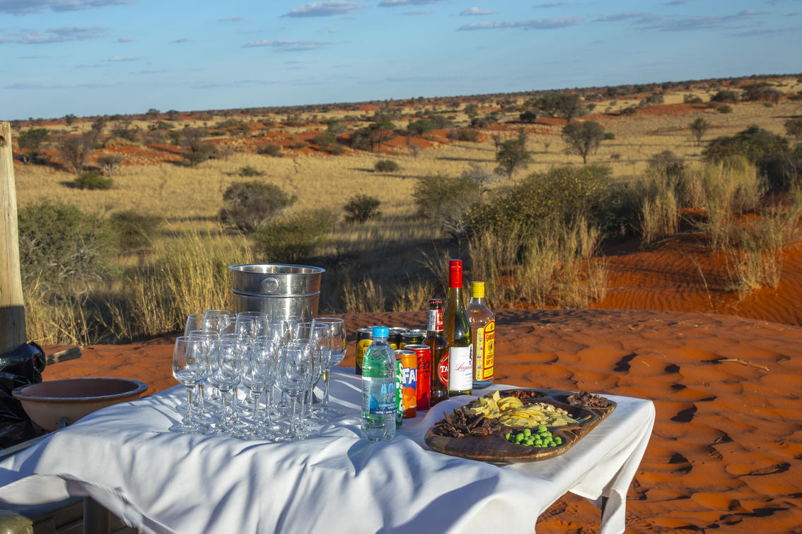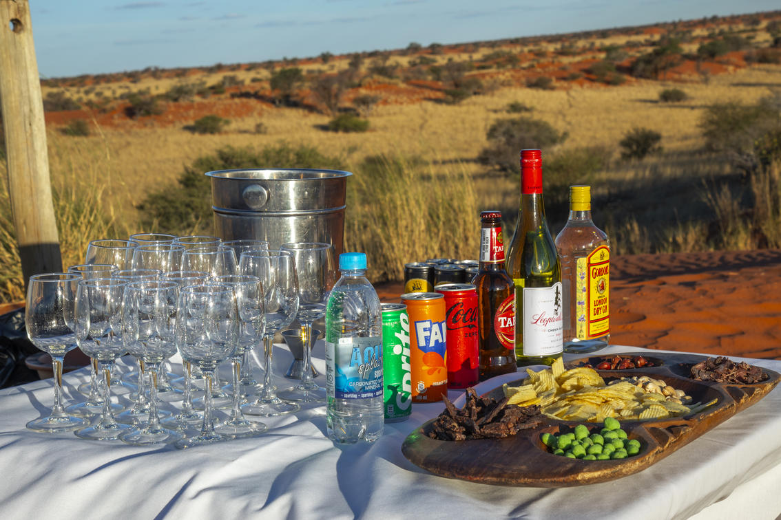 Neigt sich der Tag dem Ende, ist es Zeit für den Sonnenuntergang. Den betrachtet man am besten von einer Düne aus, dabei ein erfrischendes Getränk in der Hand.