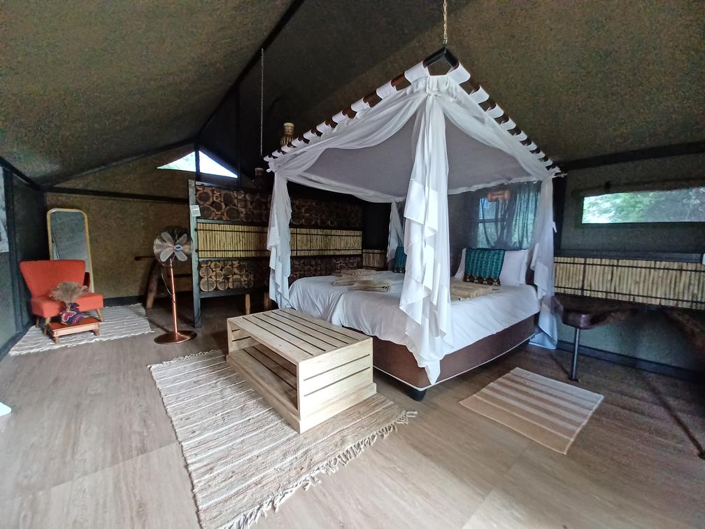 3 feststehende Zweitbettzelte mit Nachttischlampe, Badezimmer, Tee- und Kaffeekocher, heissem Wasser (solarbetrieben) und Kühlbox. Ein erstklassiges, persönliches und umweltbewusstes Safarierlebnis. Die komfortablen Zelte sind durchschnittlich 32 qm gross, von der eigenen Terrasse hat man herrliche Ausblicke in die Natur. Maximal 2 Personen.
