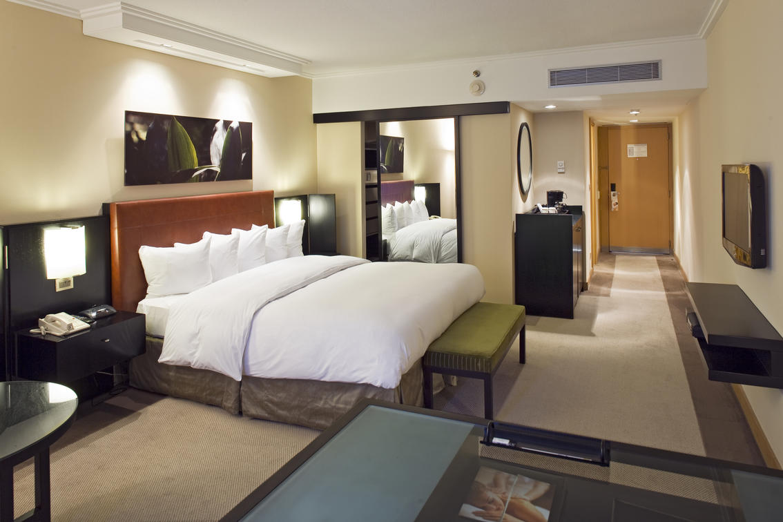 Dieses Zimmer bietet den Zugang zur Executive Lounge, wo Sie mit einem täglichen Frühstück, kostenlosem WLAN in der Lounge, Cocktails am Abend und den ganzen Tag alkoholfreien Getränken mit herrlichem Panoramablick auf Puerto Madero entspannen können. Die Nutzung des Fitnessraums, des Pools und des Spas im Hilton Fitness ist ebenfalls im Preis inbegriffen.