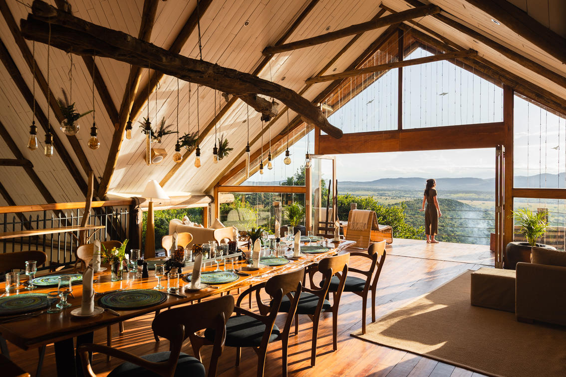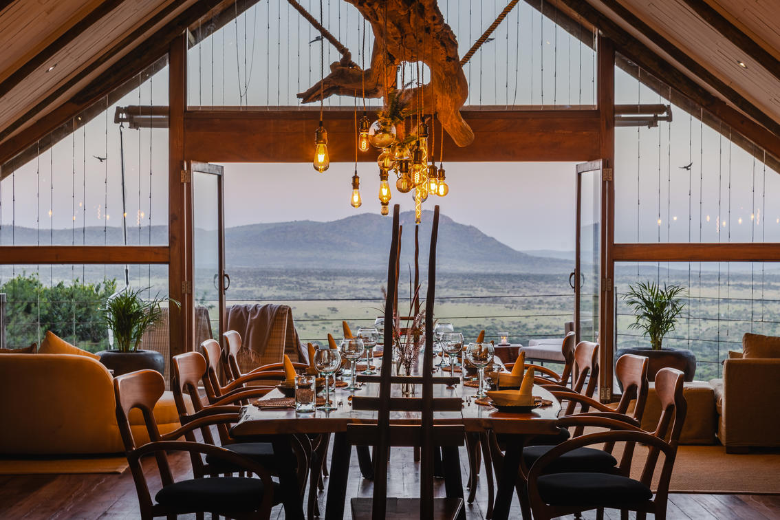 Dining room and views at Cottar's Bush Villa