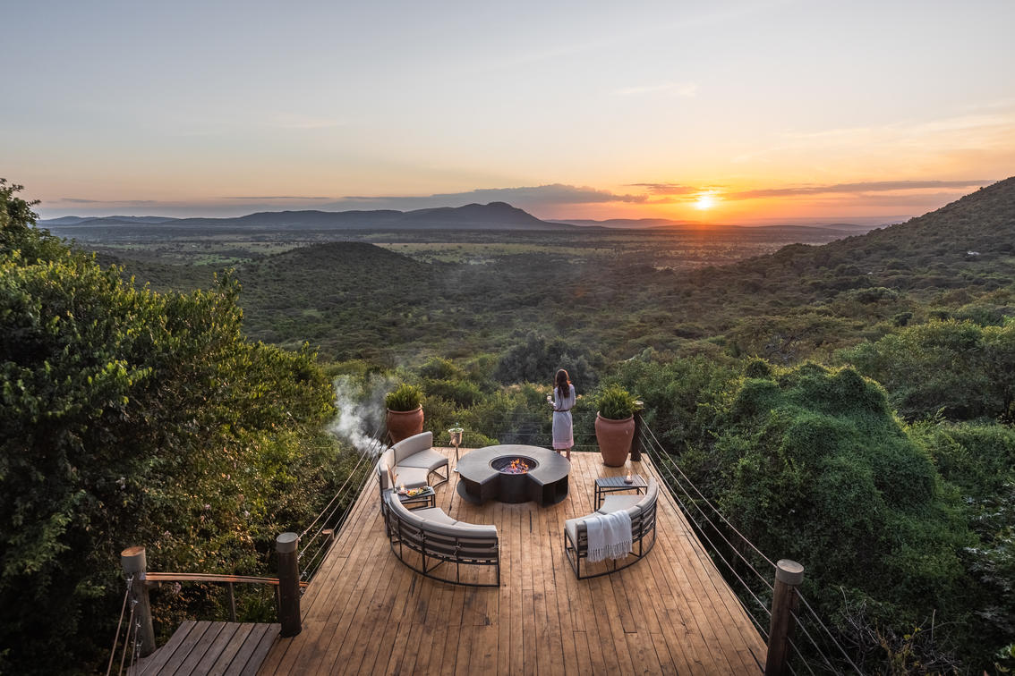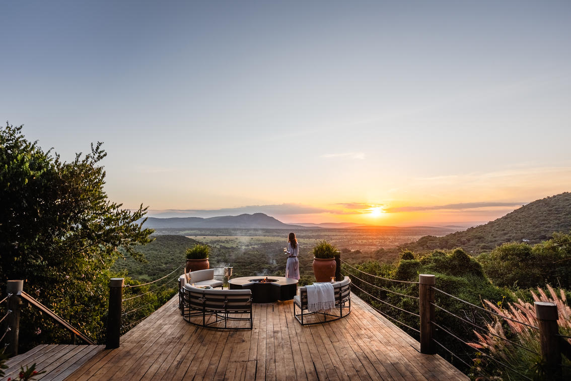 Sunset on the deck at Cottar's Bush Villa