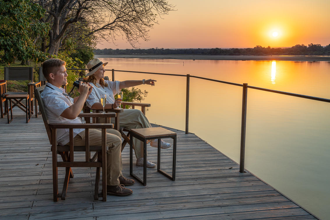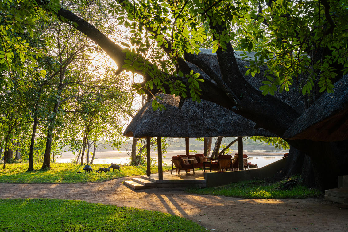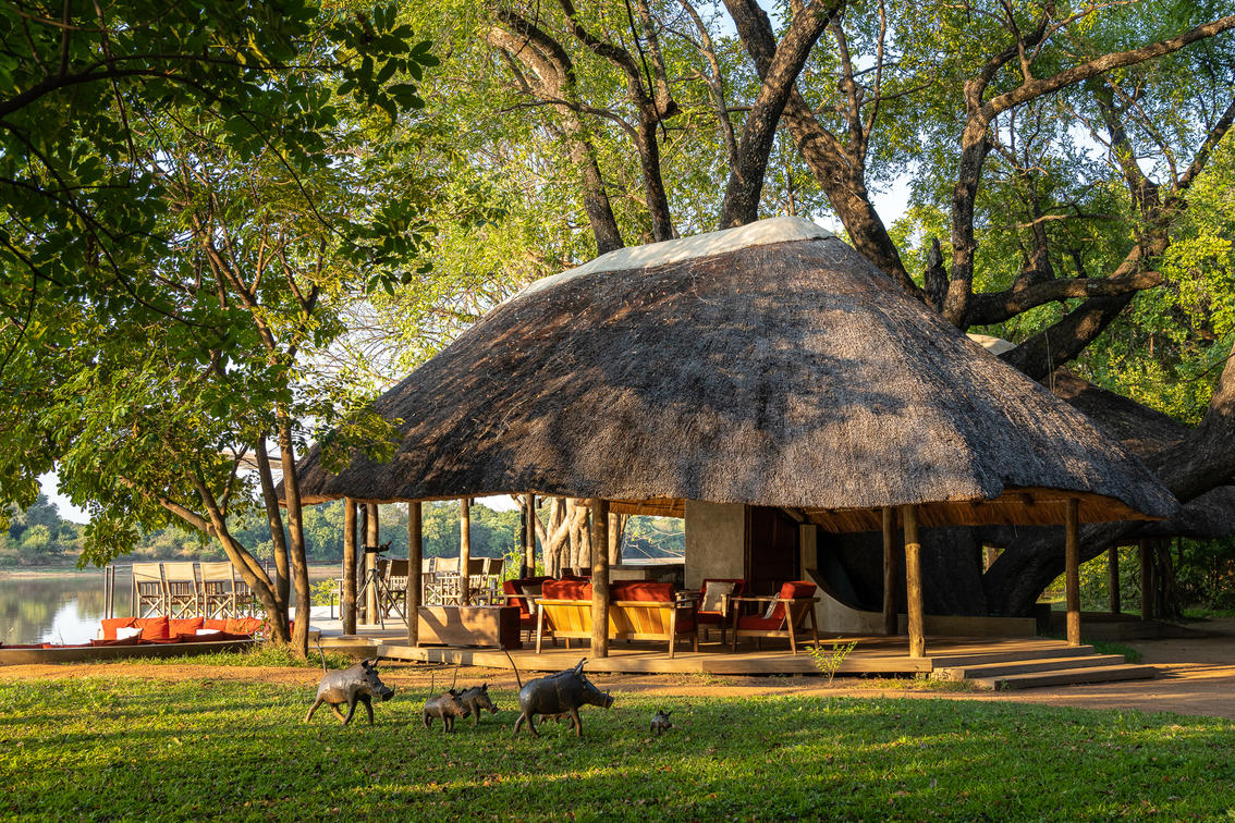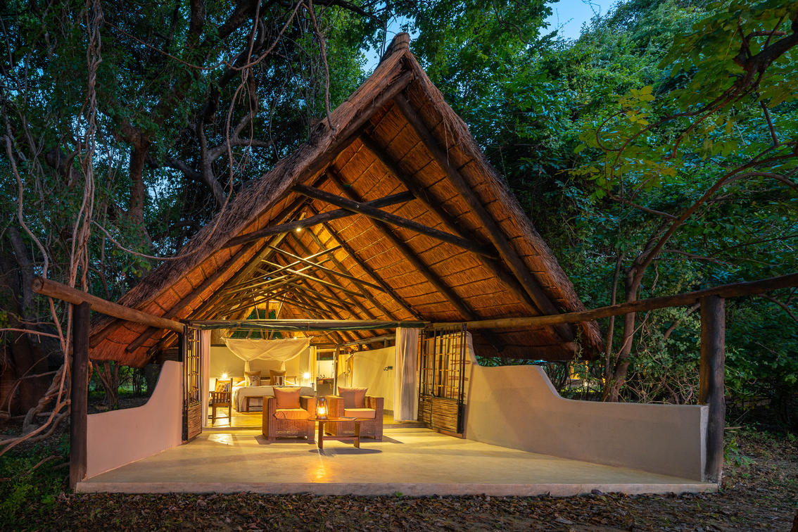 Nkwali CampGuthaben: Robin Pope SafarisPrivate offene Chalets mit Blick auf die Luangwa und den Park