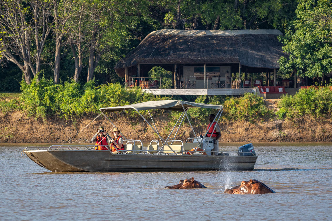 Nkwali CampGuthaben: Robin Pope SafarisBootfahren der Luangwa in der Smaragd-Saison