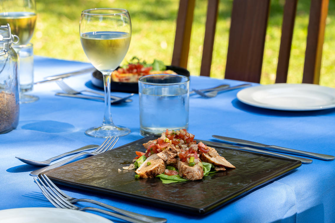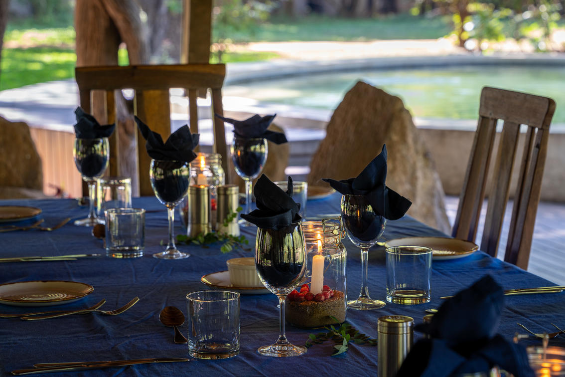 Lager NkwaliGuthaben: Robin Pope SafarisBar- und Frühstücksbereich im Nkwali Camp