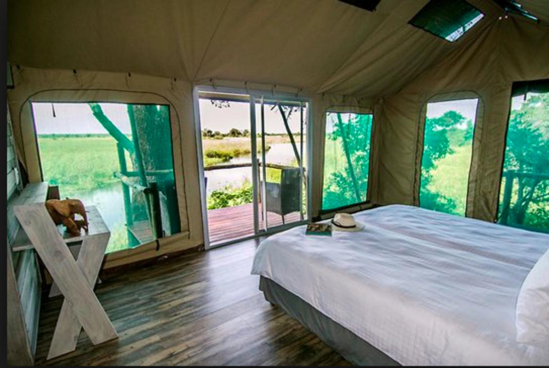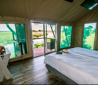 Kazile Island Lodge mit Blick auf den Fluss