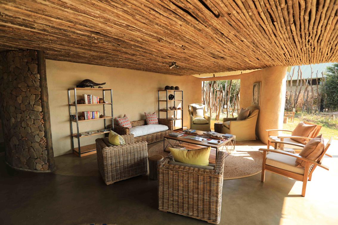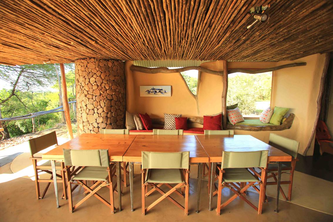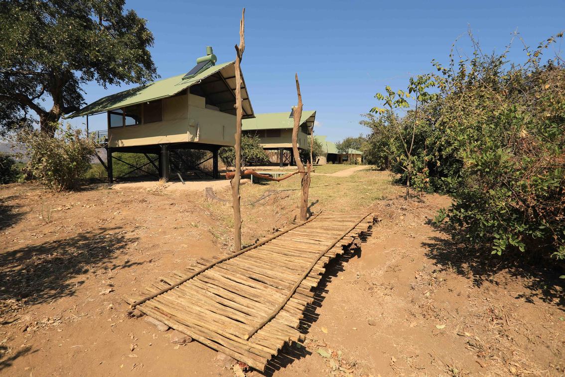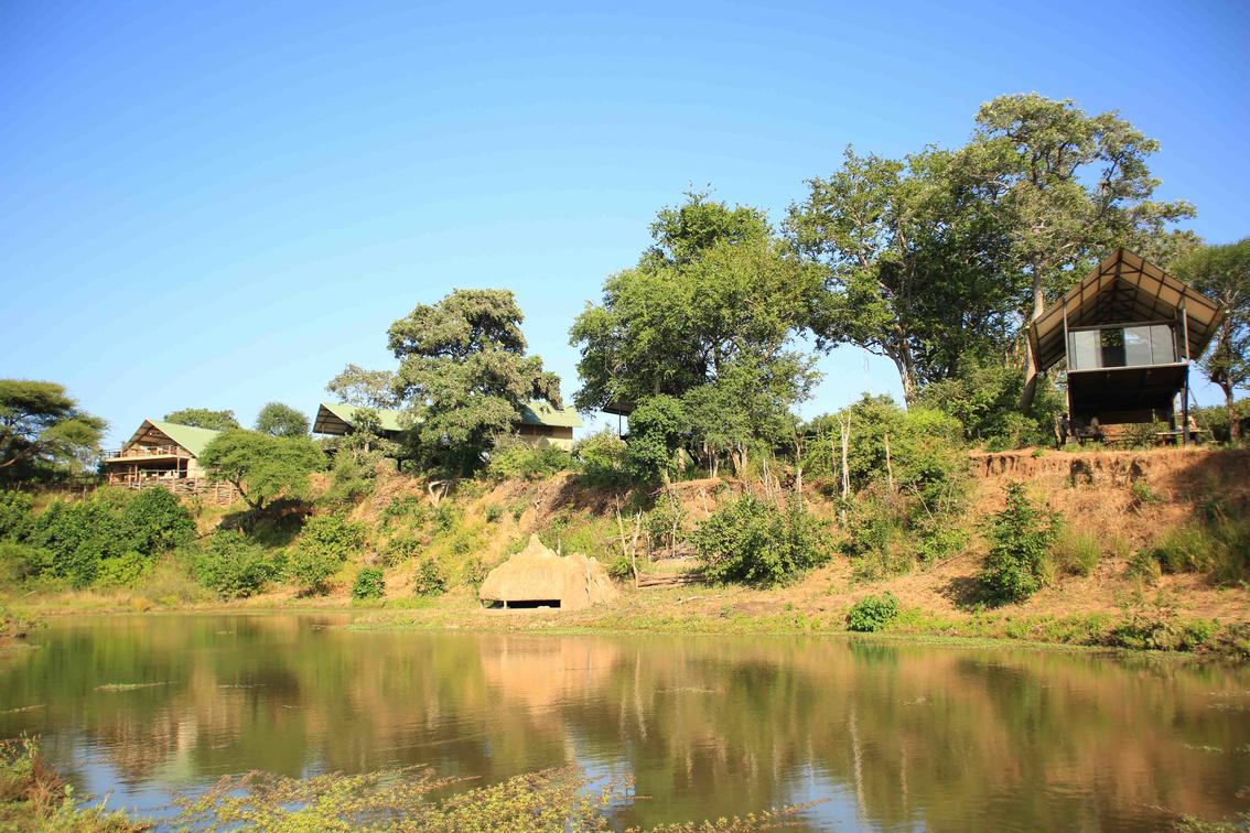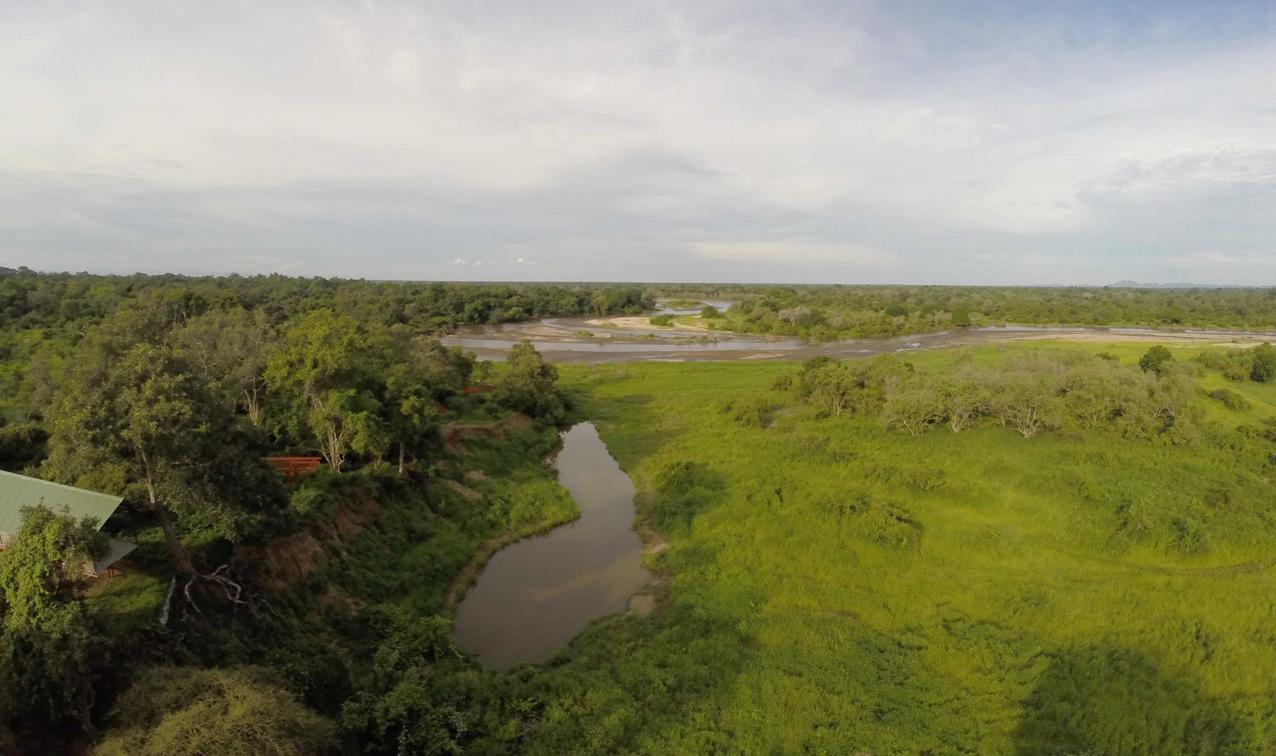 Luftaufnahme des Lagers mit Blick auf das Ruckomechi Riverbed