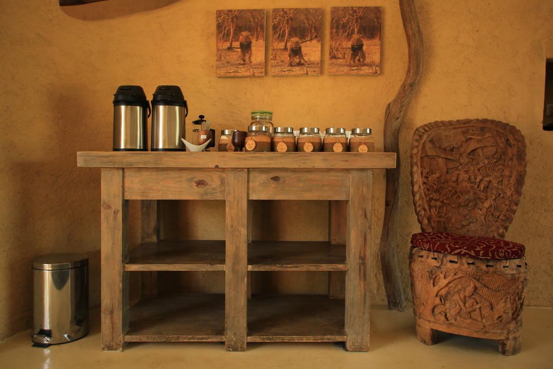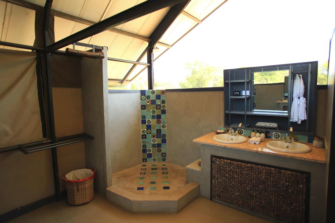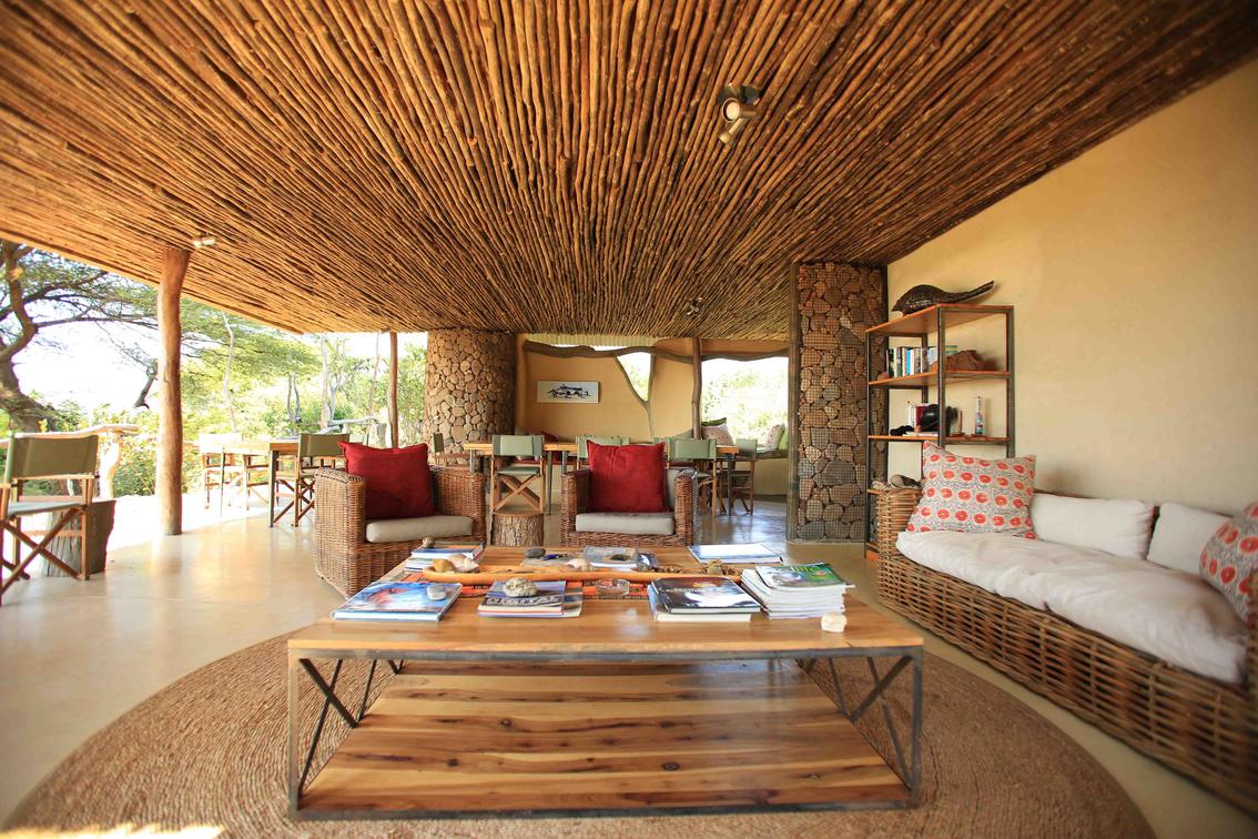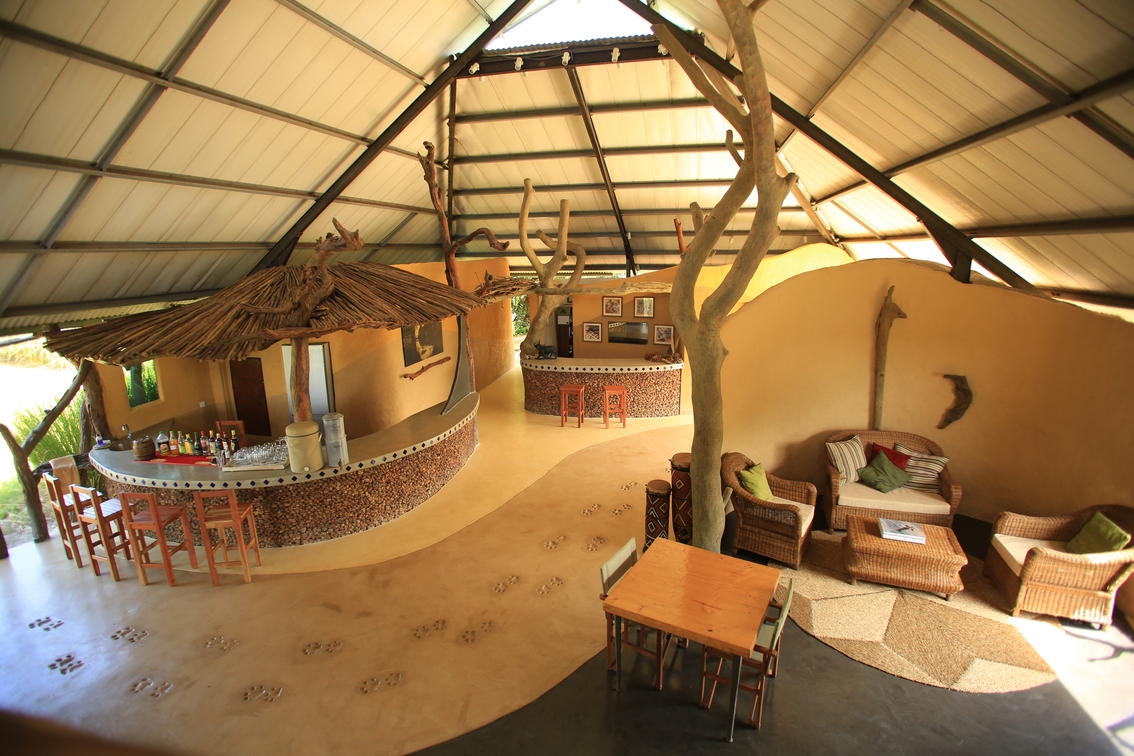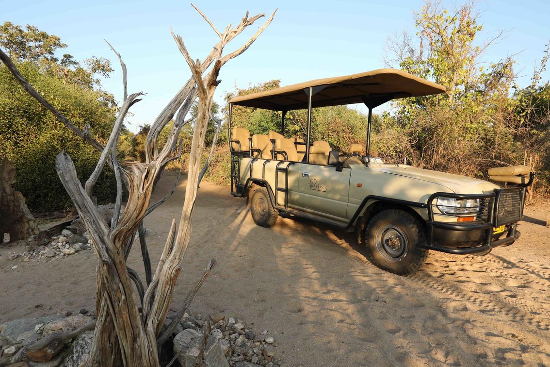 Luftaufnahme des Lagers mit Blick auf das Ruckomechi Riverbed