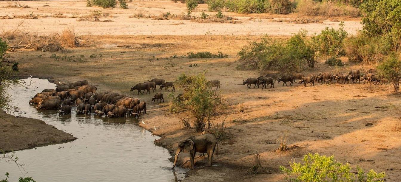 Luftbild des Lagers und des Ruckomechi-Flussbettes
