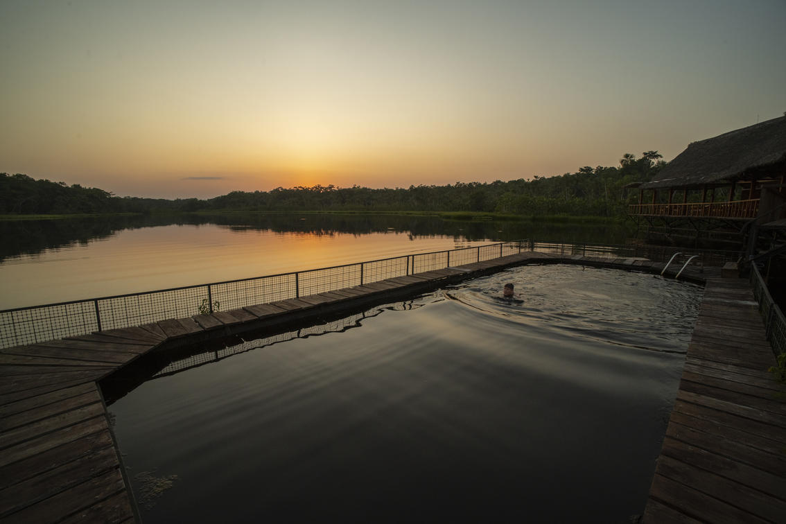 Einzigartiger Pool, in dem Sie sicher im schwarzen Wasser des Pilchicocha-Sees schwimmen können