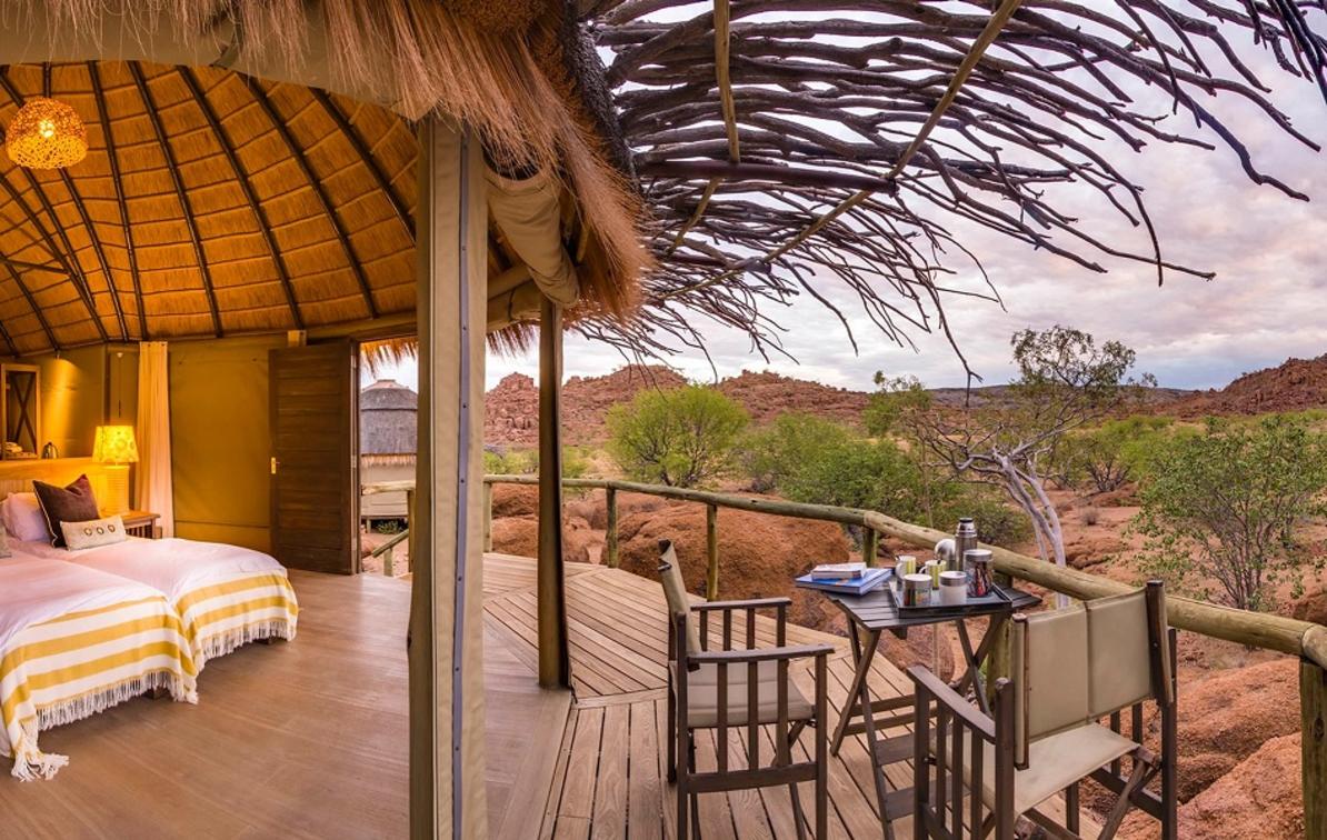 Superior-Zimmer mit Blick auf das Mowani Mountain Camp von Chiwani Safari Camps