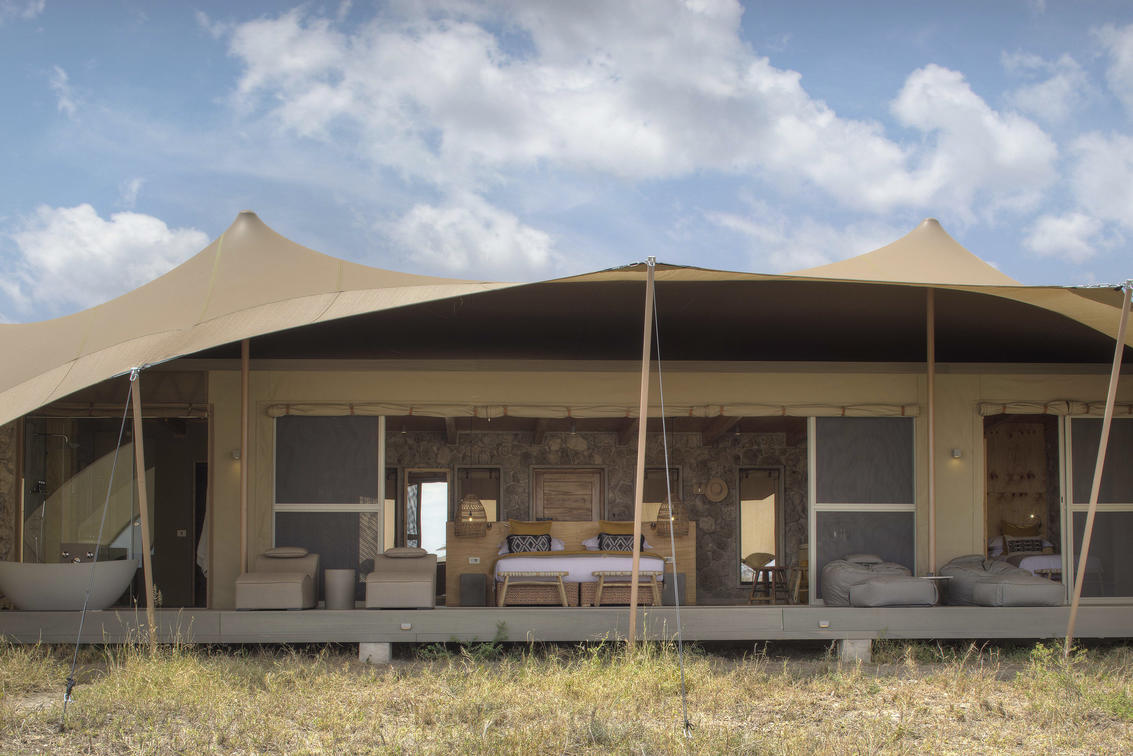 Namiri Plains - Zelt mit Blick auf die Ebenen