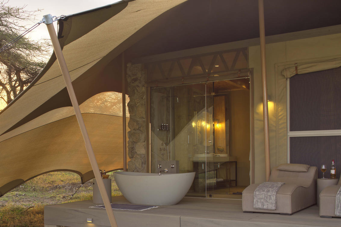 Namiri Plains - Zeltdeck mit Außenbad