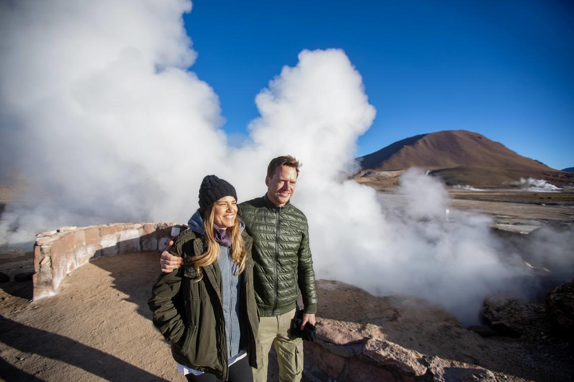 In one of the driest landscapes on Earth, the Atacama Desert reveals its many wonders. Vast salt flats stretch for miles and host high-altitude lagoons that shimmer in vivid turquoise, home to flourishing flamingo colonies. Ancient petroglyphs etch stories onto the desert canvas and a wide array of nature’s marvels awaits discovery, including energetic geysers, hot springs, kaleidoscopic cliffs and snow-draped volcanoes.