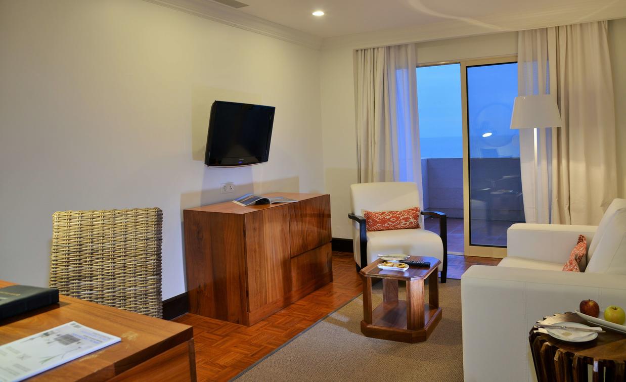 Relax in the spacious and elegant Executive Suite, which features a separate lounge area with a sofa and a coffee table. The suite boasts magnificent views of the sea and is tastefully decorated with ethnic wallpaper. Bathroom facilities include a separate bath, a shower and a toilet.