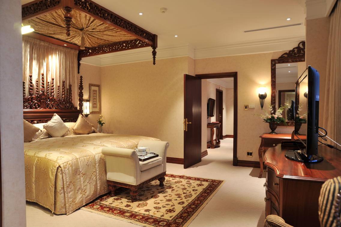 The Deluxe Rooms located in the main colonial building are sea-facing or city view with king size or twin beds. The interiors are classic with elaborate, ornamented wood furniture. The bathrooms have a separate shower and a bathtub, and the toilet is within its own cubicle.