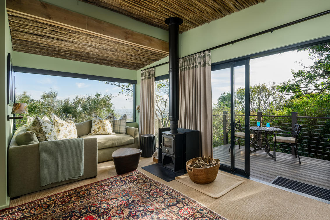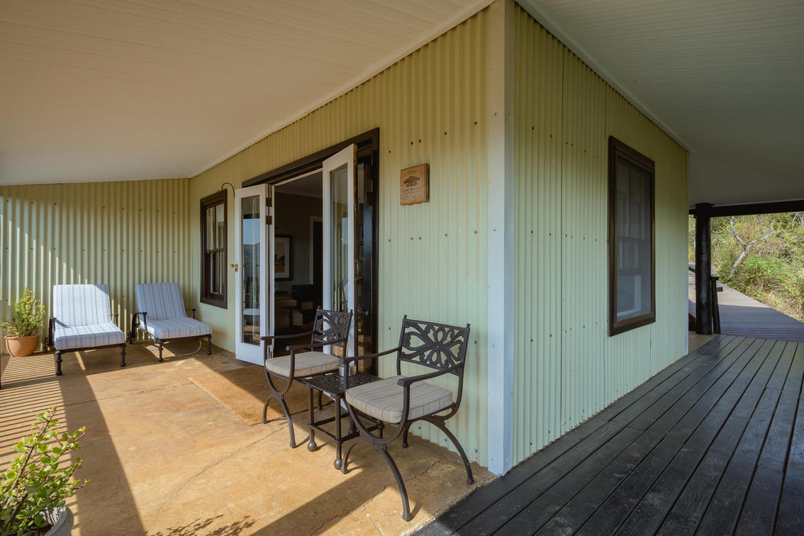 Large windows fill the space with natural light, and a wood-burning fire place adds warmth in cooler weather. The outdoor bath and open-air shower add a unique element to your stay, bringing you closer to the sights and sounds of the bush without sacrificing privacy.
