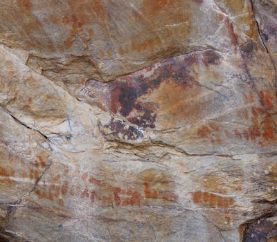 There are 7 recorded sites throughout Sanbona Wildlife Reserve, however many more can be found. Rock art sites date back to more than 3500 years and depict the spiritual beliefs and lives of these fascinating people. During their travels, members of the group would congregate around a communal fire, weaving stories and celebrating the gift of life while the Shaman would meditate through rhythmic dancing, singing and clapping and while in a trance, receive visions and guidance. This medicine man or woman would ensure the well being of the tribe, protecting them from evil and sickness, predicting the future and ensuring good hunting and rains. Certain animals such as the Praying Mantis and the Eland were honoured and revered and were considered to have great spiritual powers.
