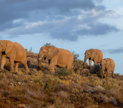 Sundowner evening drives offer spectacular displays of light as the evening sun sets over the Little Karoo.