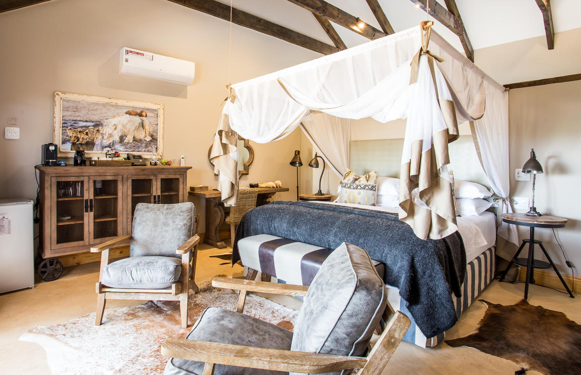 Luxury rooms have mostly view over the Village gardens with partial views over the mountains and valley. Rooms have en-suite bathrooms, fireplace, air-con, safe, mini bar, and lounge area. Coffee and tea facilities, bathrobe, slippers & guests amenities.