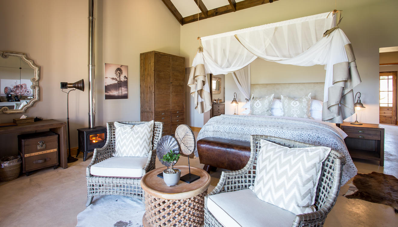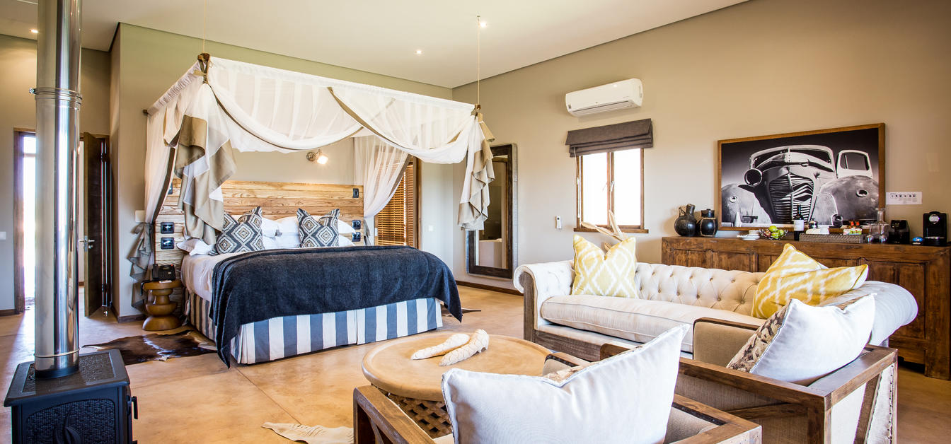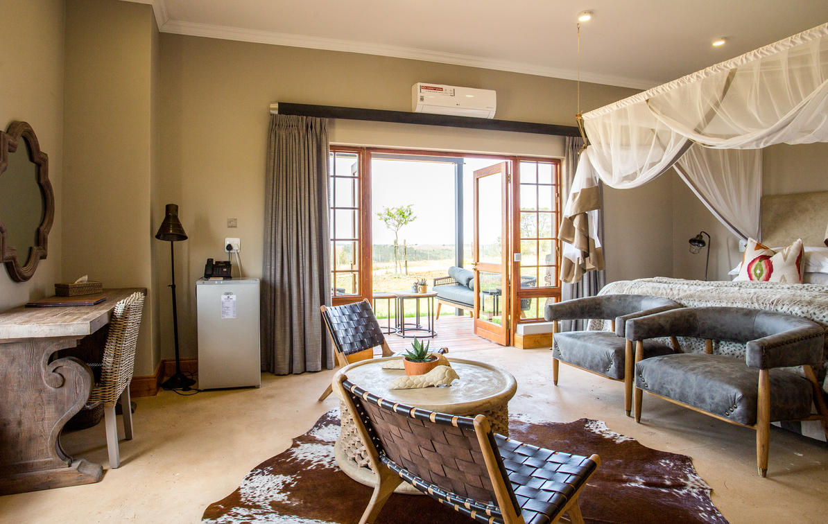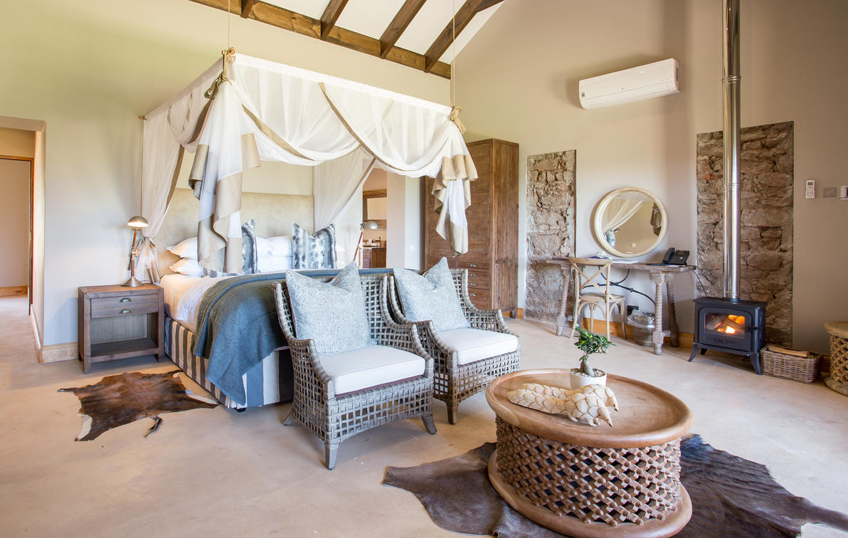 The Superior room is extremely spacious with 180-degree views over the mountains and valley with a full en-suite bathroom, fireplace, air-con, safe, mini bar, and large lounge area. Coffee and tea facilities, bathrobe, slippers & guest amenities
