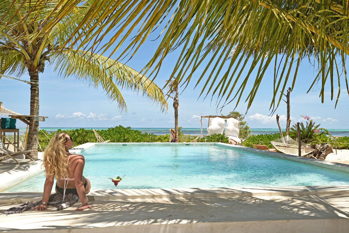 In House Guests and Walk-in Visitors are welcome at our beach bar right next to the large plunge pool, which faces the ocean, where you can sip exotic cocktails, refreshing drinks, homemade tropical fruit juices or local and Italian coffees at any time during the day. We are Nature Lovers, therefore only birds, wind and ocean sounds play music at the Restaurant & Bar.
