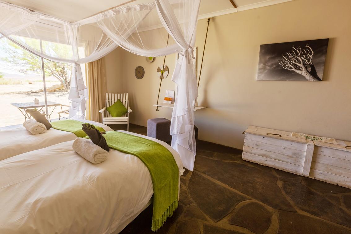 Surrounded by the majestic Tsaris Mountains, flat gravel plains and inselbergs in the Namib Desert and situated only 45km from Sesriem, the gate to Sossusvlei is The Elegant Desert Eco Tented Camp!